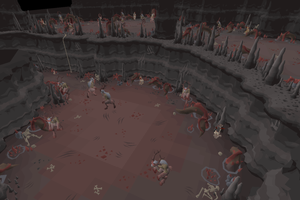 The south-western sections of the dungeon are entirely multicombat and cannons can be placed, while two caves in the south-east and two in the north are single-way combat.
